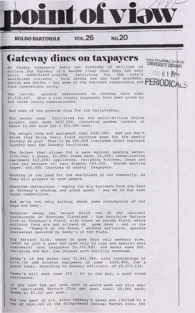 By the way in which, what can we find out about this Gateway Company? They make all kinds of substantive monetary selections. Properly, we all know that town of Cleveland and Cuyahoga County created Gateway Corporation, with each metropolis and county appointing board members. However are they good with cash?