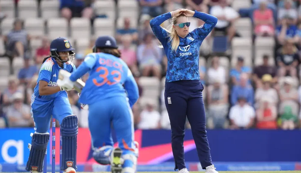 The sport turned within the hosts’ favour halfway by means of the innings after Harmanpreet Kaur was initially given not out for an lbw from Charlie Dean. Sciver-Brunt determined to ship it upstairs and the assessment confirmed the ball to be hitting the stumps as India went 4 down.