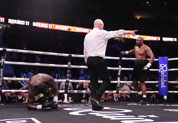 Chisora got here out swinging within the eighth, but it surely was Wilder’s proper hand that may lastly rating the primary knockdown of the struggle, practically knocking Chisora out of the ring.