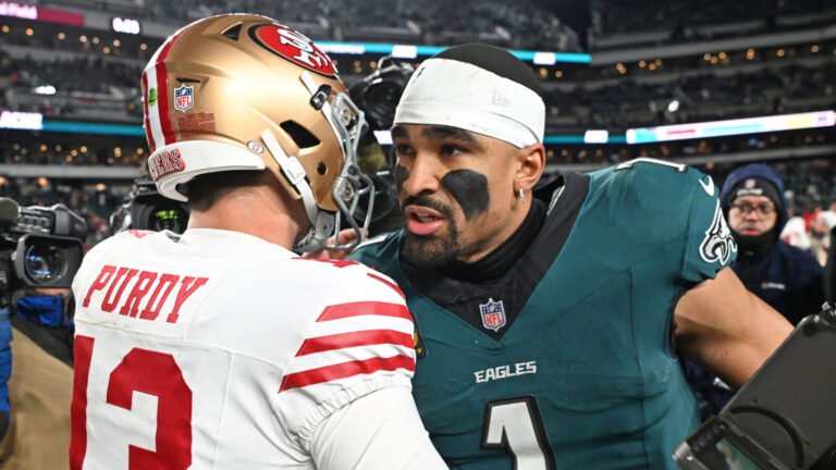 Philadelphia Eagles quarterback Jalen Hurts had an opportunity to defend offensive coordinator Kevin Patullo following the workforce’s 23–19 wild-card loss to the San Francisco 49ers. His response was telling: He declined to take action.