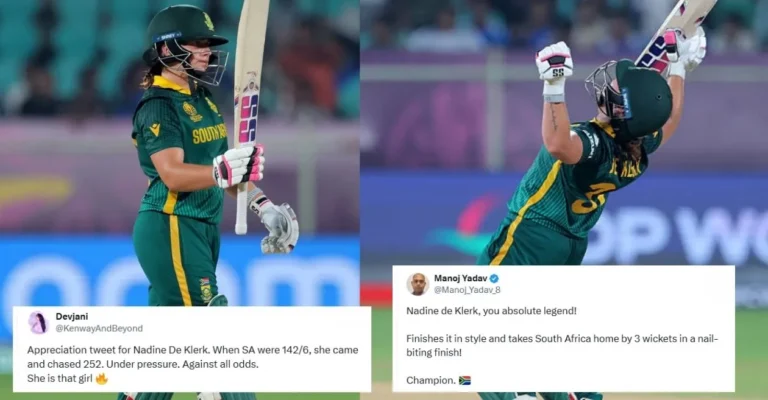 Appreciation tweet for Nadine De Klerk. When SA had been 142/6, she got here and chased 252. Beneath strain. Towards all odds.