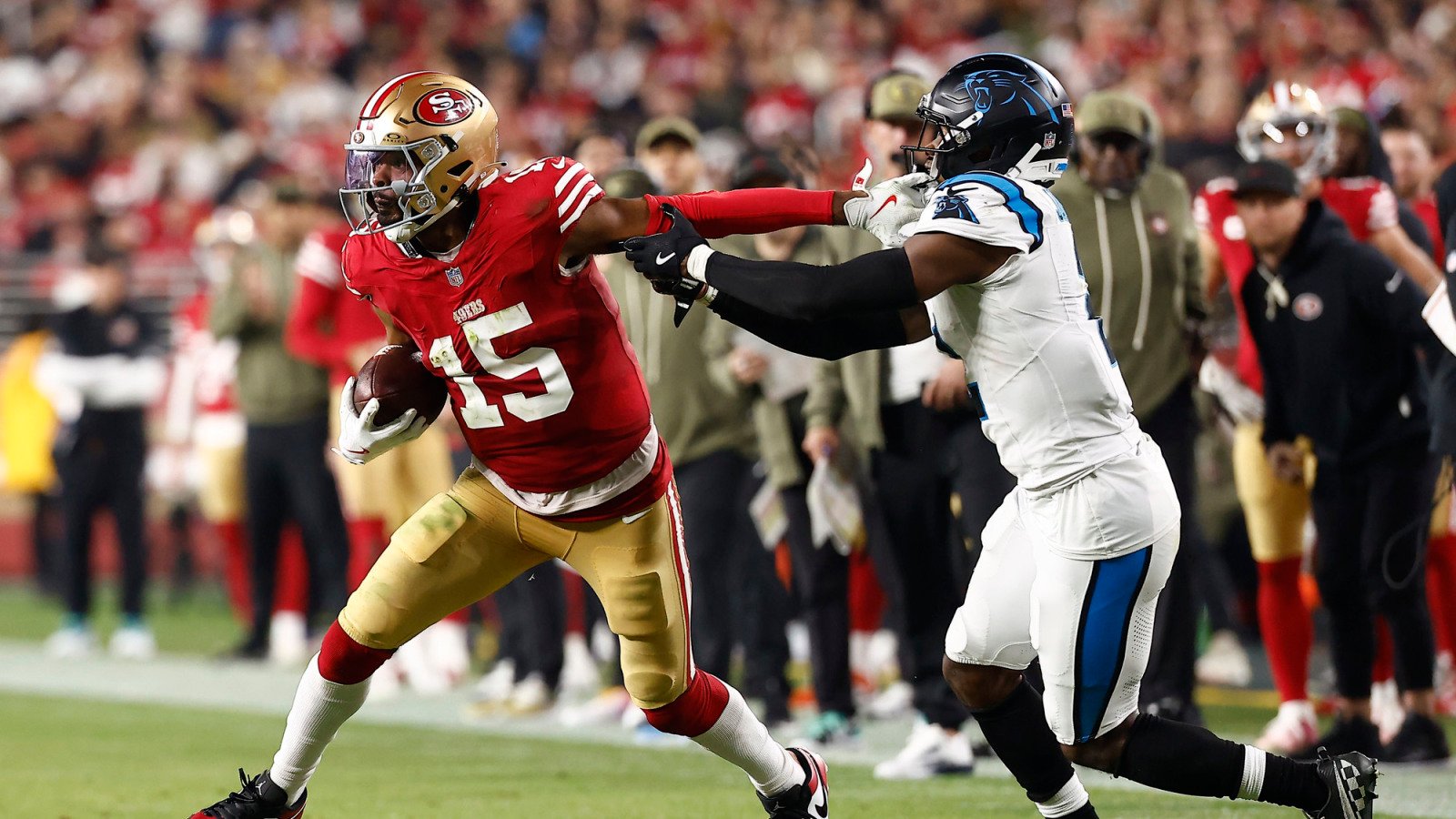 Each Jennings and Moehrig confirmed out throughout the “Monday Night time Soccer” conflict. Jennings caught 5 passes for 41 yards and caught the 49ers’ lone landing reception, whereas Moehrig was tied for second on the Panthers with eight mixed tackles.