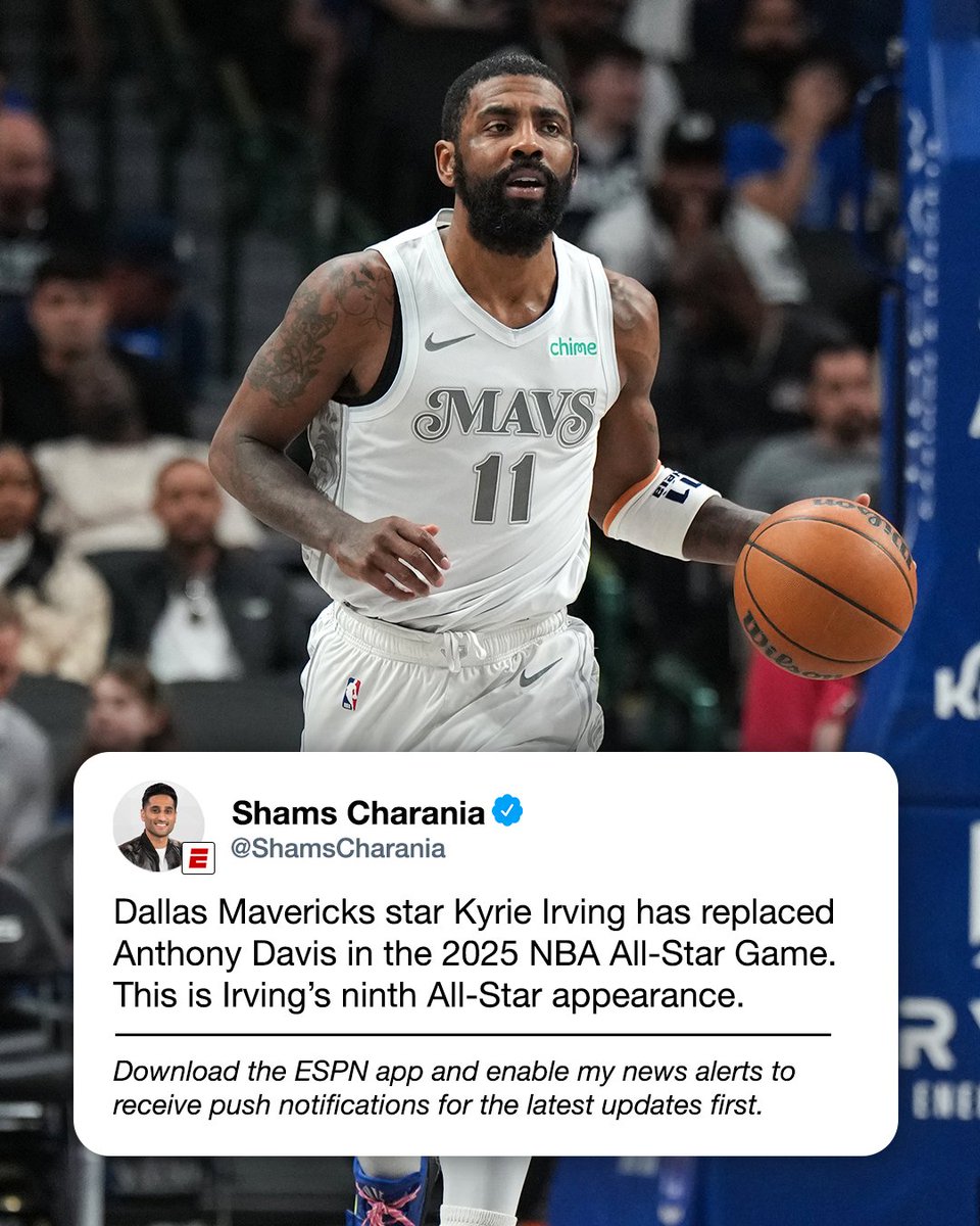 Dallas Mavericks star Kyrie Irving replaces Anthony Davis on the Western Convention All-Star roster. – 5:46 PM