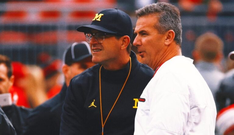 Meyer additionally famous that he truly is aware of Jim’s brother, Baltimore Ravens coach John Harbaugh, “pretty properly.” He added that he has “large respect” for Jim’s father, Jack Harbaugh, who was a longtime school soccer coach.