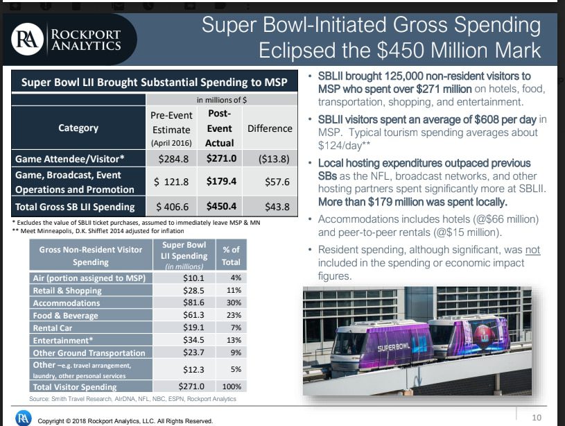 Moreover this quantity given to us by SportsImpacts, there isn’t a single piece of proof exhibiting that anybody benefitted to the diploma of $240 million. Native metropolis budgets for Santa Clara and surrounding areas show no difference at all. In reality, San Jose admitted after the 2016 Tremendous Bowl that they anticipated tens of millions yet got just enough to pay for the prices of internet hosting the occasions required exterior the sport.